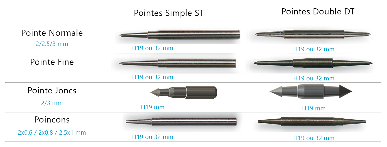 DT : Double Tranchant | ST : Simple Tranchant | DA : Dégagement Arrière